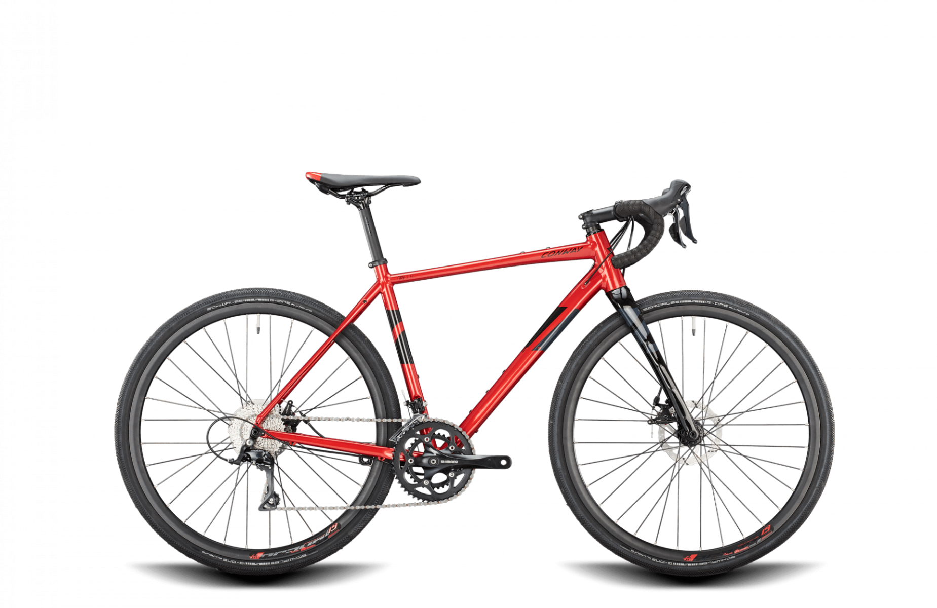 Elsker du landevejen, men er fristet af skovens smalle stier? Så er denne Conway Gravelbike med carbon disc forgaffel i en flot rød farve lige dig. Den er tilmed udstyret med Shimano Sora 18 Gear.