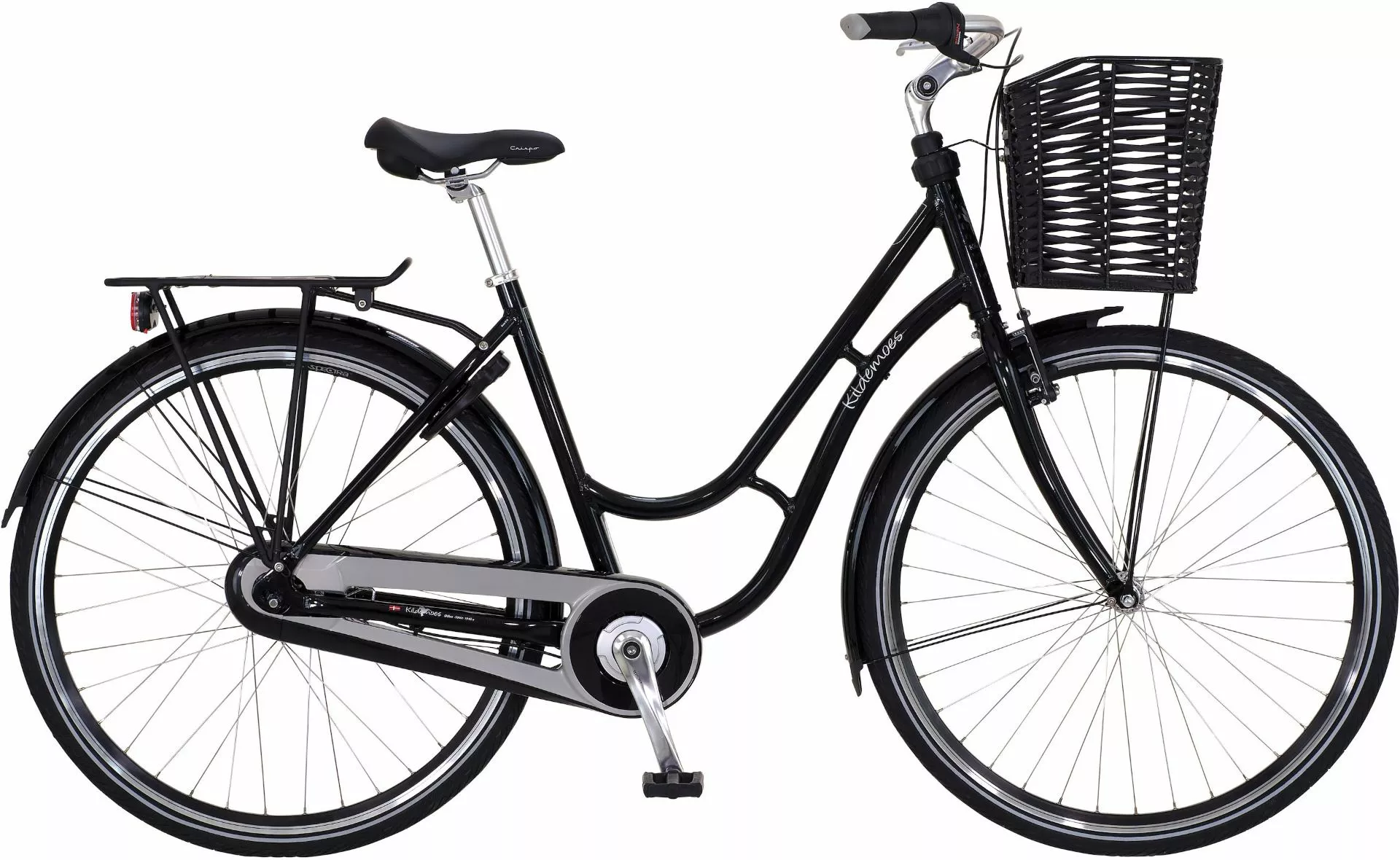 Kør gennem byen med stil på en dame retrocykel i moderne udgave. Cyklen er fyldt med udstyr f.eks. den fastmonterede forkurv, batteribaglygte, lukket kædekasse, styrlås, bagagebærer, lås og justerbar frempind for optimal kørestilling. Fås i flere farver